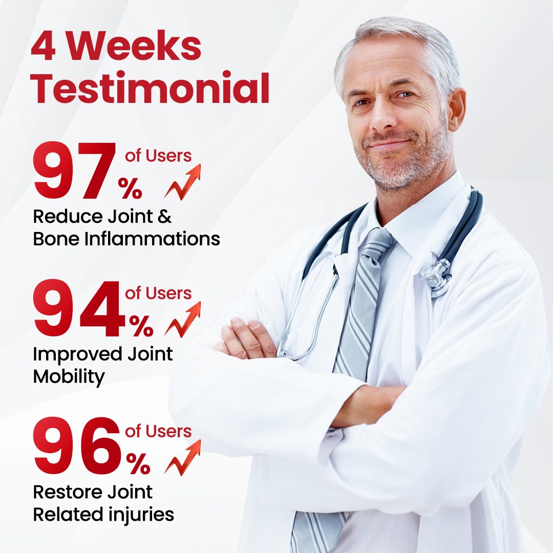 After three weeks of consistent use, patients experienced a notable reduction in pain, stiffness, and inflammation, with many reporting improved joint mobility and comfort as early as the second week.