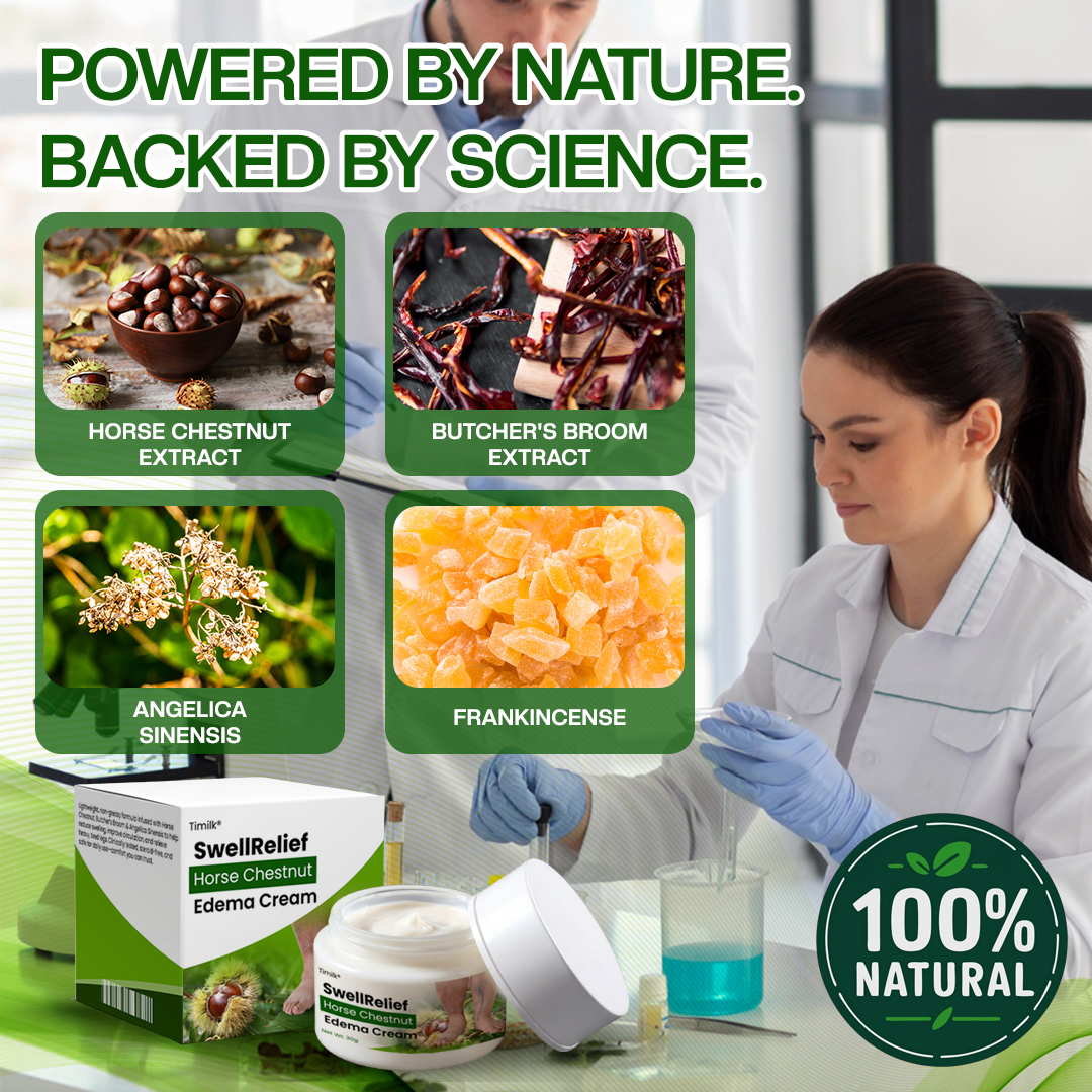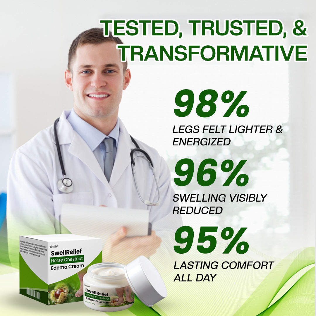 Timilk® SwellRelief Horse Chestnut Edema Cream has been carefully formulated to target swelling, heaviness, and discomfort caused by edema, varicose veins, or poor circulation. Clinically evaluated and trusted by experts, it works quickly to ease puffiness, improve leg comfort, and support healthier blood flow.
